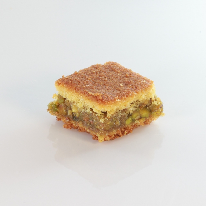 A gift box weighing around 950g of Maamoul Mad Pistachios. Ingredients: Pistachios, Sugar, animal ghee, semolina, water, wheat flour, cashew, wheat starch, rose water, glucose syrup, vegetable ghee (coconut), almond paste (sugar, almond, glucose syrup, stabilizer: glycerol, bitter almonds, stabilizer: sorbitol), whole milk powder, corn starch, butter, salt, corn oil, dough improver (wheat flour, emulsifier (E472e), flour treatment agent (E300)), yeast, baking powder, potash alum, antioxidant (E321