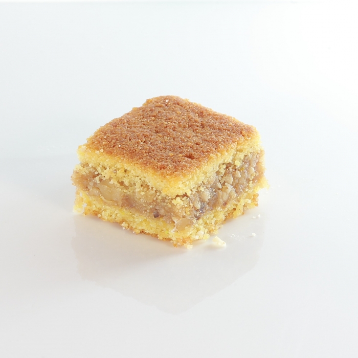 A gift box weighing around 950g of Maamoul Mad Walnuts. Ingredients: Semolina, sugar, animal ghee, walnuts, cashew, wheat flour, water, wheat starch, glucose syrup, flower water, vegetable ghee (coconut), corn starch, whole milk powder, salt, rose water, corn oil, yeast, baking powder, cinnamon powder, dough improver (wheat flour, emulsifier (E472e), flour treatment agent (E300), potash alum, antioxidant (E321).